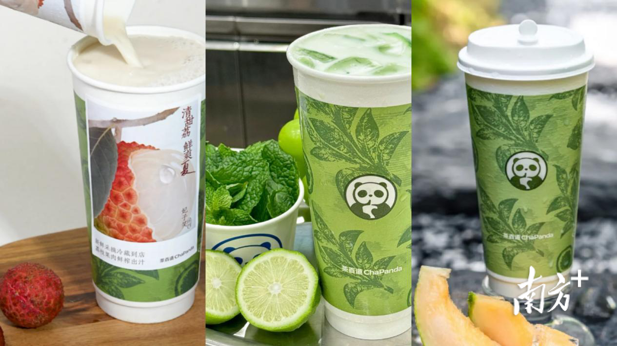 茶百道荔枝冰奶、冰吸薄荷冰奶与仲夏蜜瓜冰奶。