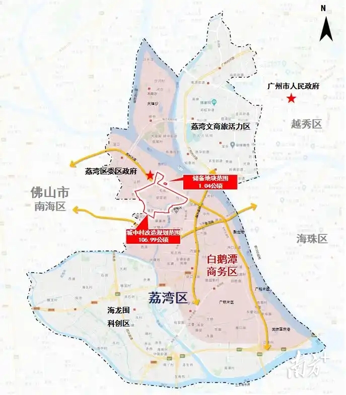 作为芳村茶叶市场的核心区域,山村片区位于白鹅潭商务区重点功能片区,是广佛融合与城市更新的重要空间载体。现有建设已难以满足城市功能发展需求,亟待通过城中村改造、收储出让等方式,提升空间品质,完善区域功能,助力城市高质量发展。